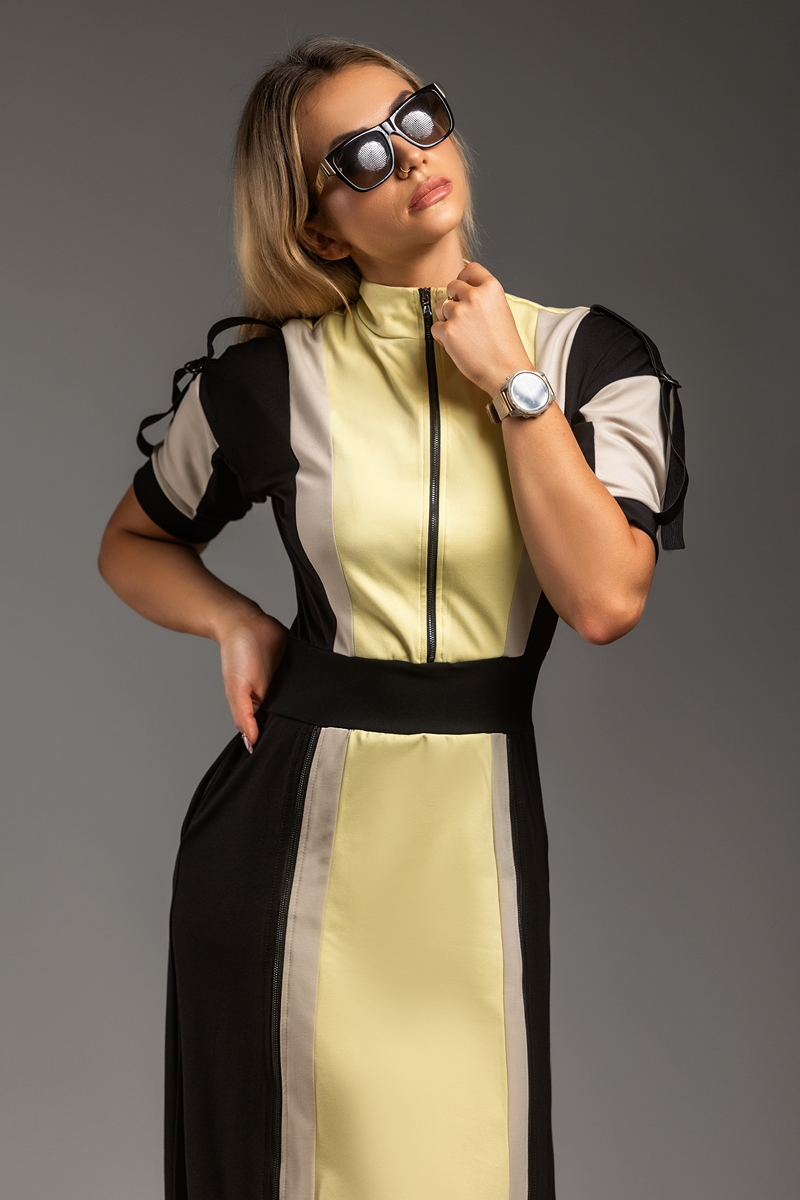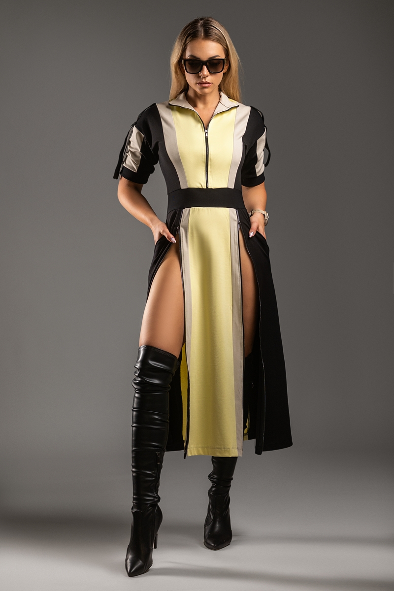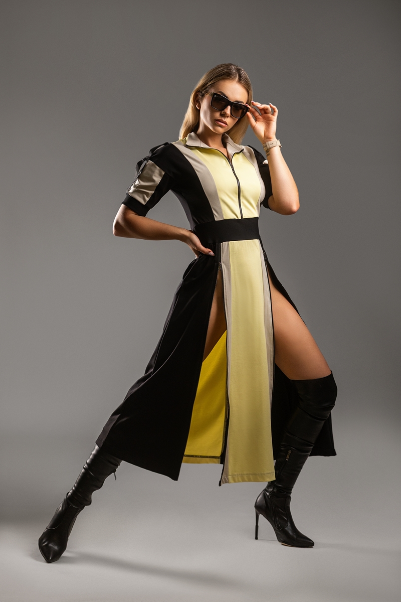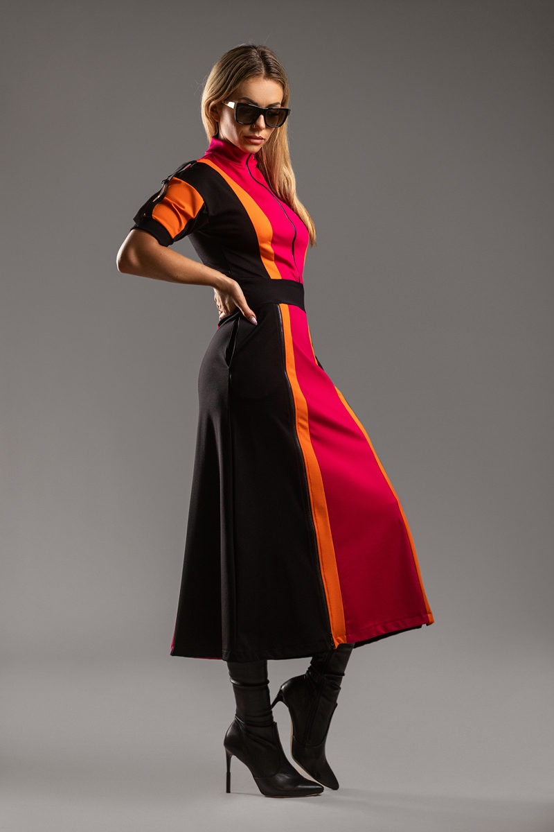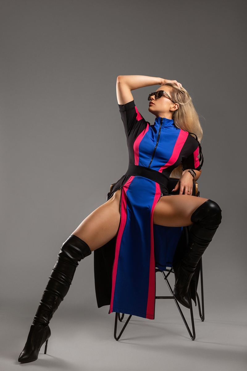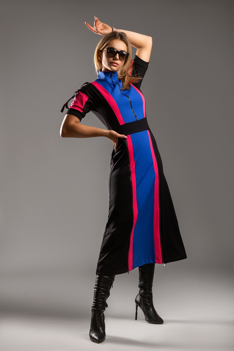 Z kolekcji Chroma Vixen – zaprojektowany dla kobiet ceniących komfortową odzież sportową i elegancki, nowoczesny styl. Dla kobiet które nie boją się energii oraz koloru. To model, który przyciąga wzrok, podkreśla sylwetkę i jednocześnie daje pełną swobodę ruchu. Sukienka podkreśla talię i wydłuża sylwetkę . Dzięki 3 zamkom (dekolt i nogi) stylizujesz ją jak chcesz: najlepiej – na szpilce. Sukienka DRIFT DRESS dla kobiet w dobrej formie.